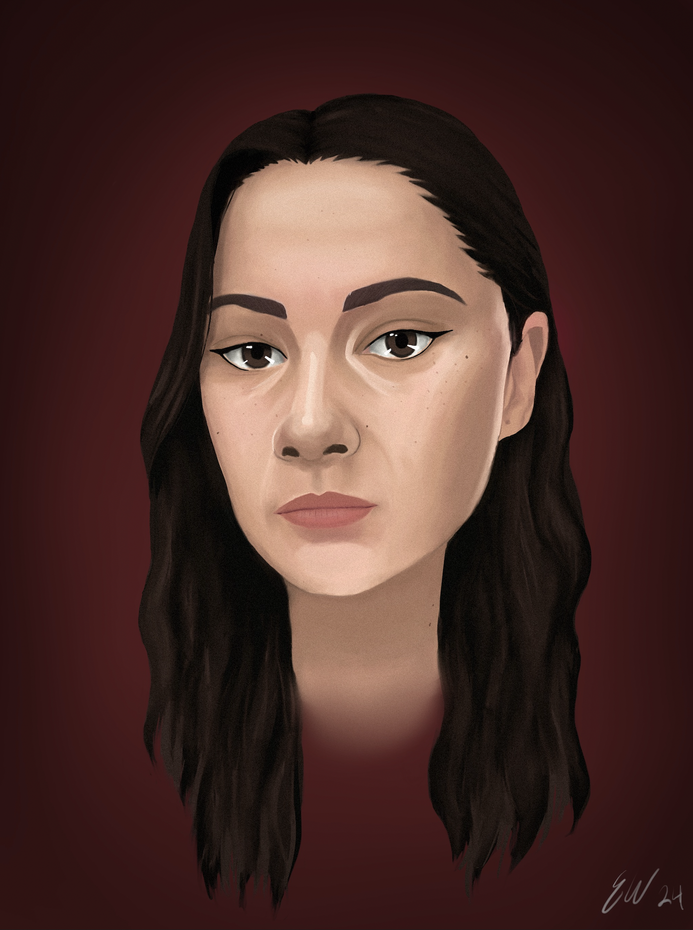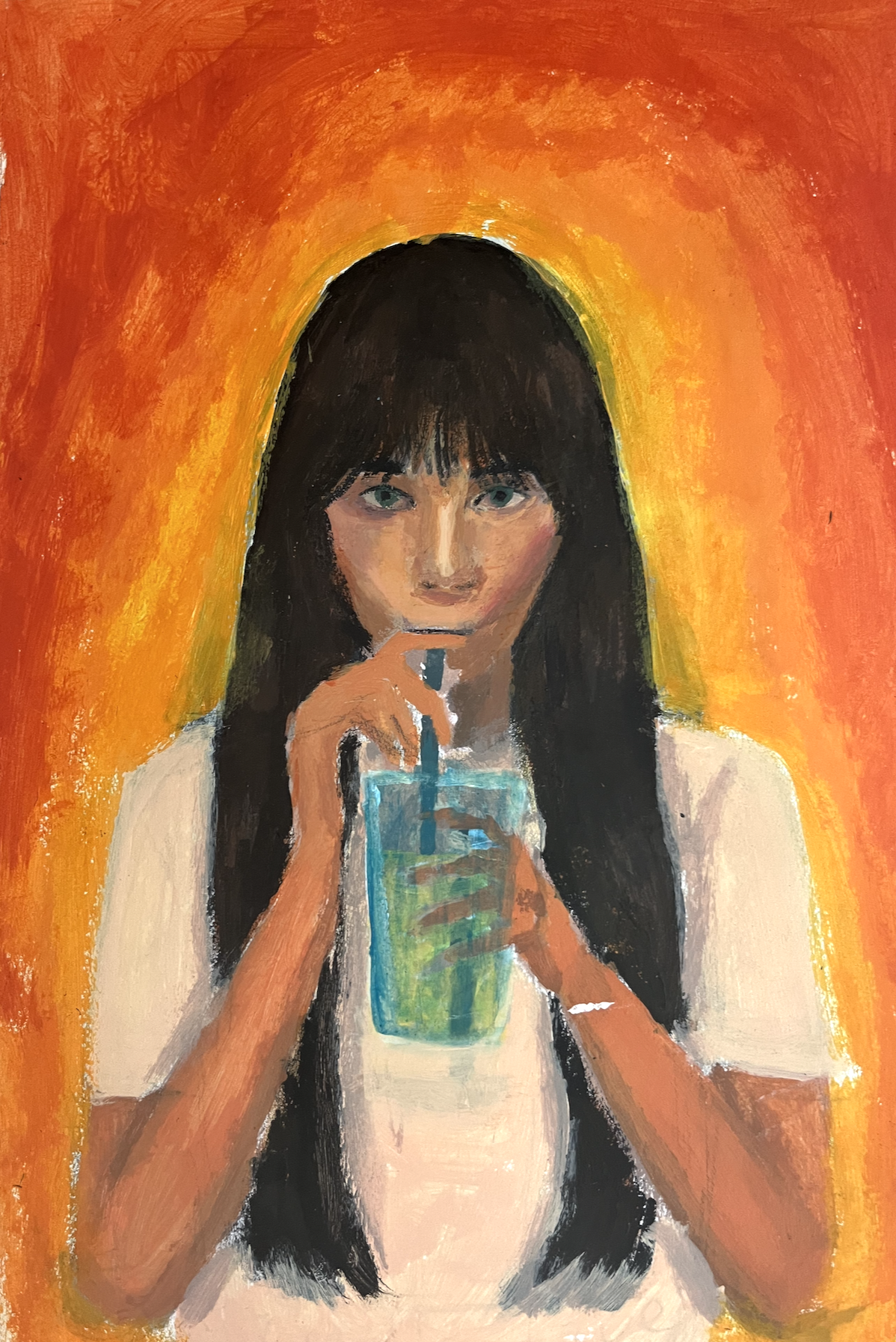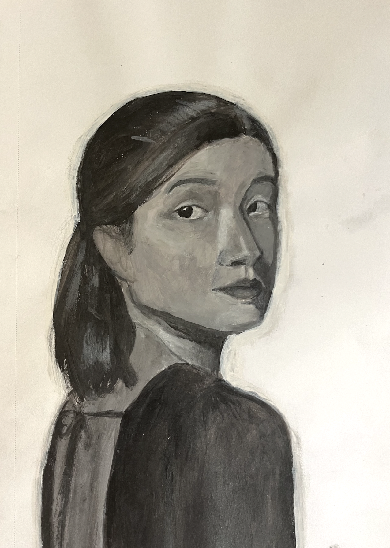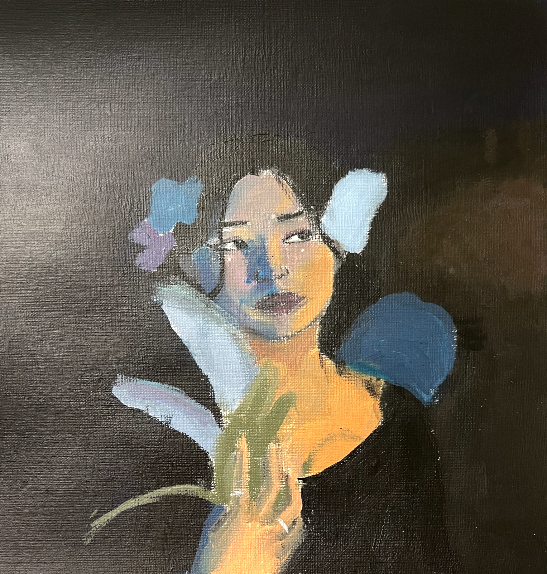 This was one of my first painted portraits (October 2022), and I quickly decided I liked acrylics much more than the digital art I had been doing in middle school, and they were easier to work with than pencils because I could paint over parts that I wasn't happy with.