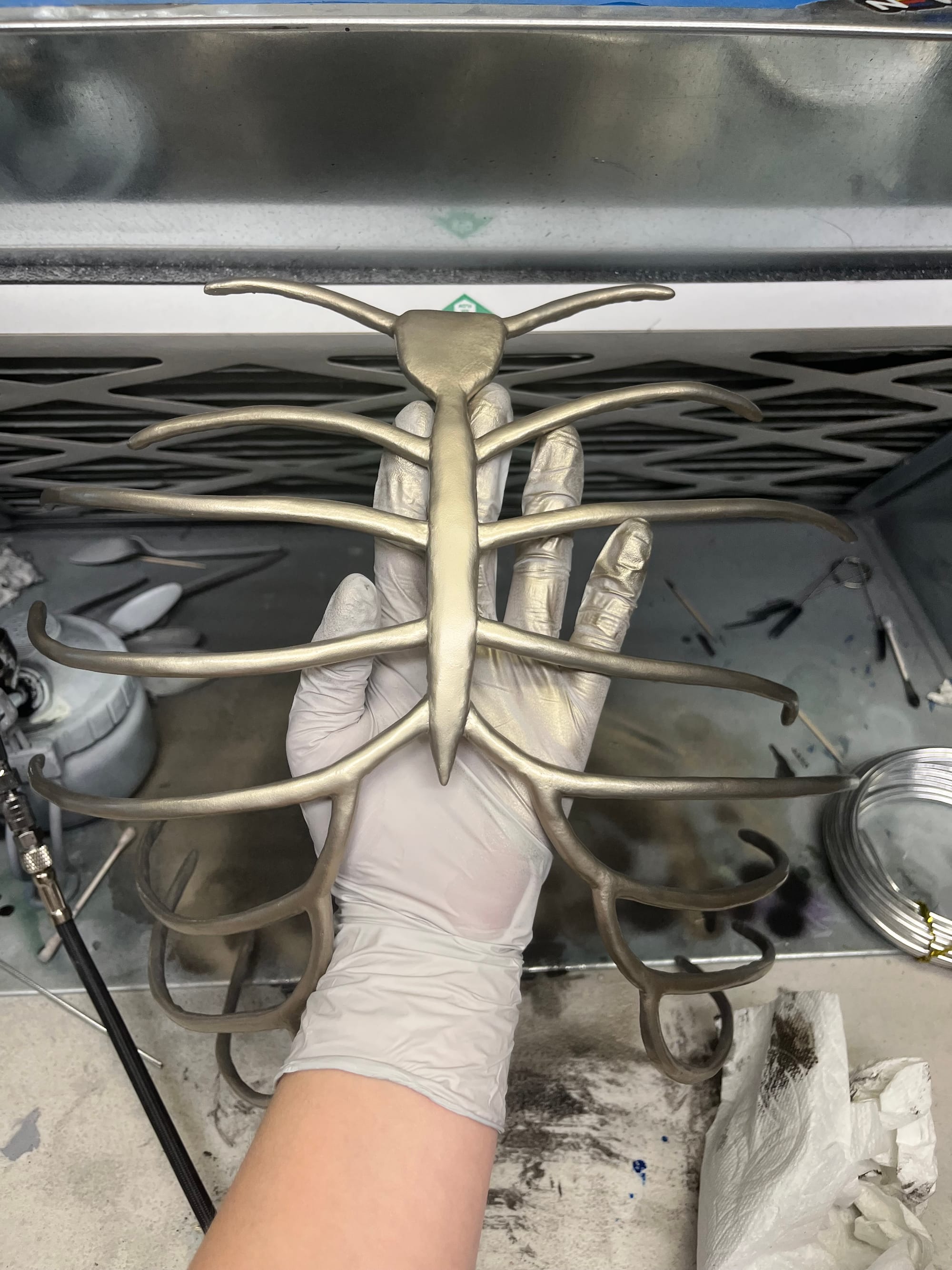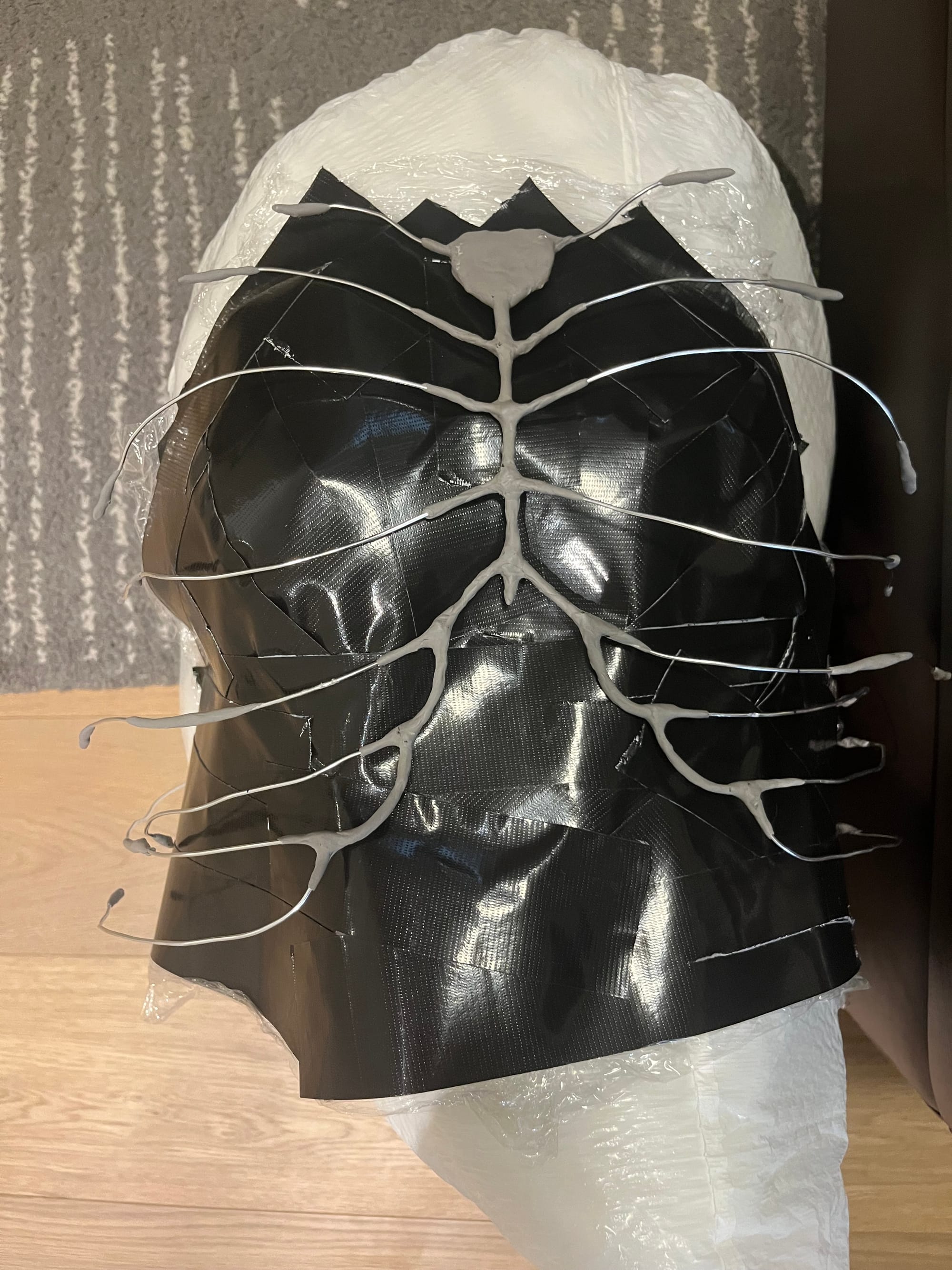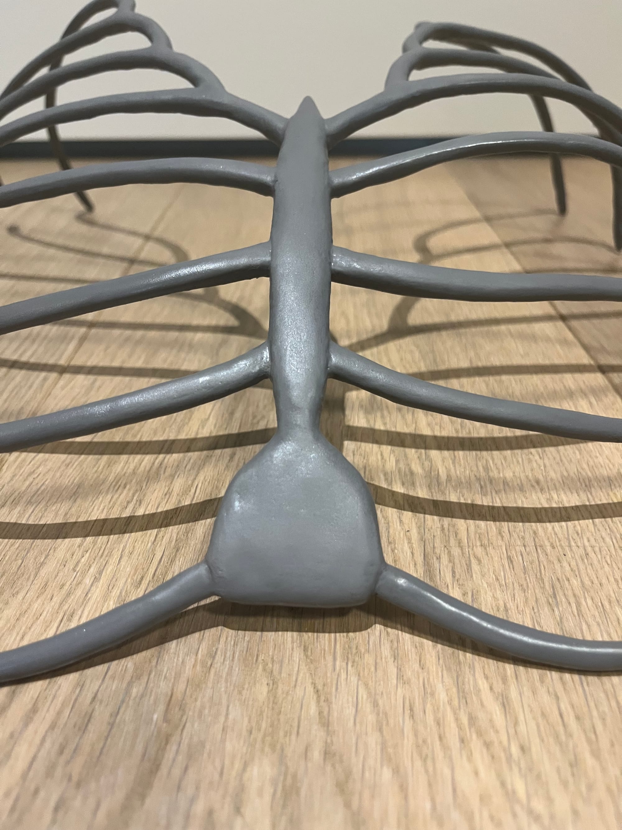 I designed a magnetic ribcage accessory inspired by one of my favorite books, Harrow the Ninth. I used a 15 AWG wire base, and built up the form with foam clay. I used very small rare earth metal magnets, embedding them inside the foam clay and sewing them to the inside of my (store bought) dress.